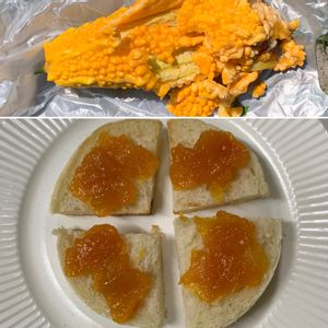 知らずに食べたら何⁉️🤔 リクエストがあったので、昨日娘家族が集まった時食べさせました😋 結論はゆずジャムが1人で後は分からず😙 ゴーヤと知らせたらびっくりしてました🤗 少し苦味を感じたが、パンの焦げた味かと思ったそうです😄