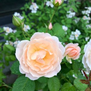 バラ🌹咲き始めました💓😊 1番最初にお迎えしたバラ スターリィヘブンズ♡ 毎年,とっても良い香りで可愛く咲いてくれます♪ 2枚は昨年お迎えしたラ マリエ♡ トゲが少なくて,花もちが良い美しいお花です💕😊 バラの咲くこの季節、良いですよね〜お庭にずっといたくなります😆