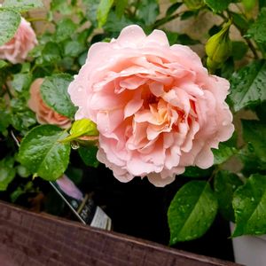 🌹冬越し成功🌹 昨年お迎えした見切りっ子のスターリィ ヘブンズ 鉢のまま冬越ししたくて発泡スチロールで囲い土を詰めて冬越し🍀 一つ目の蕾は固まって開きませんでした(๑•́_•̀๑)シュン 昨日の雨を避ける為に玄関フードに入れていたら今朝ドアを開けた瞬間に良い香りが…💖 優しいサーモンピンクがお気に入りです◝(⑅•ᴗ•⑅)◜..°💗ℓσνє゚。💗 🏷はくのスターリィ ヘブンズで昨年の姿が見られます