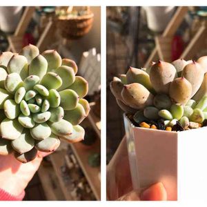 「ビアンテ」 別名:ビアント ベンケイソウ科 エケベリア属 ラウリンゼとザラゴーサの交配種 もう ほんま もぉ嫌。 またやってもうたやん!😆 ビアント 持ってた!😭 でも 色が全然違うかってん!✴ でもって 花芽もついてるし! コロンコロンがかわいかってん!♥ 仕方ないから 大事に育てます! アハハ~⤴😄