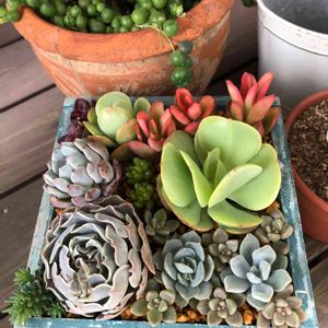 人生初のエケベリアmainの寄植❤️初めて作ってみたけどめちゃくちゃ楽しい😍Lier苗と行橋植物園産苗で寄せました🌵LierさんのYouTubeを参考に見様見真似でやってみました☺️❣️予想以上に可愛く仕上がって大満足❤️やってよかったーー💐😊