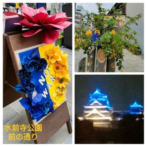 くまもと花と緑の博覧会 町中いたるところにお花 水前寺公園の前の通りも 熊本城ライトアップ💚❤️💙 色が変化するよ🏯