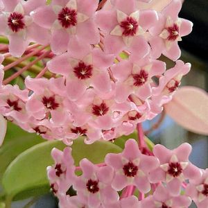 ホヤ・カルノーサ(サクララン) 5月から咲き始め1つ2つの時もありましたが、今また溢れる様に咲いています✨🩷🩷🩷✨ 数えたら15個も🤗🎶 エキゾチックな香りを漂わせています💟 調べたら、一度咲いた花座は再び蕾が付くとあったので、毎年花の数が増えると言うこと🤔? 来年も期待しちゃうな〜🥰🎶