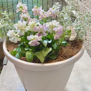 寄せ植え♡ 先週作った寄せ植えです💓 ⬇️のんのんスミレ ⬆️ネメシア ⬅️➡️オレアリアリトルスモーキー 今日は朝から体調悪く起きられず…結局一日ゴロゴロして過ごしてしまった💦 なんだか頭が重くすっきりしない… 今日は昨日お迎えしたPWのマーガレットさんやシエルブリエさん宿根ネメシアさんを植え付ける予定でしたが何もできませんでした😥 まあこういう日もありますよね😆