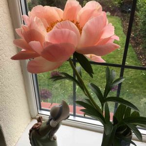 お友達のお庭に咲いたシャクヤク Coral charm。シャクヤクは、とってもきれいだけれど、大輪過ぎて、豪華過ぎて、植えたいと思わなかったけれど、こんなきれいなお花が咲くのならちょっと植えてみたいと思いました。何ともきれいなサンゴ色でした。
