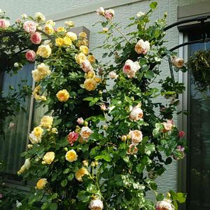 おはようございます«٩(*´ ꒳ `*)۶» 今朝はとってもいいお天気。 朝は冷えますね( ˶ˆ꒳ˆ˵ ) 昨日は何度か雨が降ったみたいで、お庭もしっとりしています。 今日はラムのつぶやきさんが綺麗に咲きはじめていました。 真ん中の黄色いバラさんがその子です(✿︎´ ꒳ ` )♡︎ 気温が低くなると、もっと濃い黄色い花色で咲いて下さるんですよ( ˶ˆ꒳ˆ˵ ) 黒星病に少しなりやすくて葉っぱを落としやすいので注意が必要なバラさんですけど、ひと季節過ごせば回復してくださいますし、お日様が大好きで繰り返し咲いてくださいます。 黄色い花色って元気をもらえますよね୧⃛(๑⃙⃘⁼̴̀꒳⁼̴́๑⃙⃘)୨⃛ 赤いバラさんはプロスペロ さん、絞りのバラさんはエドゥアールマネさん、サーモンピンクのバラさんはラリューヌさんです。 あと左側にひっそりとお気に入りの清流さんもいらっしゃいます(´,,•ω•,,)♡︎ 気温も下がり、花びらも増えてきて可愛いです✧︎◝︎(*´꒳`*)◜︎✧︎˖ 昨日はご心配いただきましてありがとうございます。 わたしも体調崩さないように気をつけますね(๑و•̀ω•́)و 体よりも気持ちをしっかり保たないとですね( ˶ˆ꒳ˆ˵ ) 今日も素敵な一日を(〃ω〃)♡︎♪︎