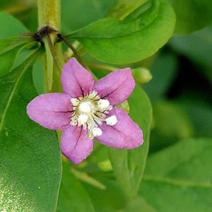 枸杞(クコ)🩷 小さな花がユラユラ🌿💞 蕊が魅力的でウットリです(ღ*ˇ ˇ*)。o 実は美容にエエそうです😉 🏷しあわせ運べるように 🏷花咲く乙女たち♡