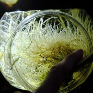 うわ〜〜 気づいたらえらいモジャモジャしてる!🥸 セローム気根、10日間の変化。 in 液肥&活力剤入りの水 + エアレーション (前回の記録:8/2) 送られる酸素の量が増えたせいか、 ただ瓶に入れていたときよりも 明らか根っこが伸びる速度が増しました。 細かい根っこがたくさん。特に水面近くがモジャモジャ。 味を占めたのか、更に気根が2本出てきました。 鉢内より水中の根っこの方が勢いがありそうで これがいい状態と言えるのかはよくわかりませんが とりあえず9月までこのまましておく予定です。 液肥と活力剤は5千倍にしましたが、 溶液が減った分はただの水を足したため 有効成分はだいぶ薄まっていると思います。 藻の発生防止にアルミ箔を巻いていましたが 古い根に少しだけ藻が生えていました。 今後は藻が増えるようなら肥料分を薄めに調整しながら 1週間に半量を目安に新しい溶液と入れ替えるつもりです。 エアレーションのおかげかわかりませんが、 いくらか沈殿物や浮遊物はありますが水の濁りはありません。 水中の微生物が増えてきました。ゾウリムシかワムシか何か。 ちょっと嬉しいです。