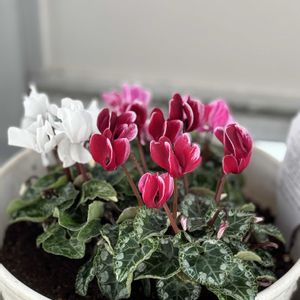 シクラメンを寄せ植えしました アリッサムは別の鉢に植えました ベランダがクリスマスモードになりました🤶🎄