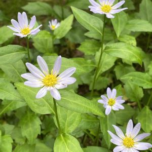 おはようございます ミヤマヨメナ ノコンギクやシロヨメナのような野生の菊は まとめて『 野菊 』 とよびます ② メリケンムグラ 帰化植物 ⑤ 散歩先~ 花壇のダンギクはかろうじて 咲きだした😅 で、今年も苗を植えてます。 引っ越し終えました^ - ^(^-^)v 見守って頂き ありがとうございました🍀
