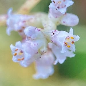 ①② ネナシカズラ/根無葛 ヒルガオ科 ネナシカズラ属 原産地:在来種 (北海道、本州、四国、九州) ・寄生植物 ・山野草 ・一年草 ・つる性 葉緑素がなく、全体的に黄白色 ・花期:8-10月 ・茎:直径1-2mmの針金状、淡黄色~紫色を帯び、紫色の斑点がある ・葉:退化して長さ2まmm以下の鱗片状 ・穂状花序:長さ3cm以下 ・花:白色、長さ3-5mmの鐘形 ・花冠:先が5裂し、裂片は尖る ・花後に花冠は褐色になり、裂片は閉じ、後に脱落する ・果実:蒴果 長さ4-5mm 楕円形、熟してくると褐色~赤紫色を帯び、1~4個の種子を入れる ・蒴果が褐色になる前の色が白色と緑色の2タイプある ・種子:長さ3-4mm 黄色~褐色 別名:ウシノソウメン、ナスビノヒゲ、ネナシグサ 花言葉:「下賤」「平静」 ③ クサギの果実とセイタカアワダチソウ セイタカアワダチソウがクサギの果実に潜って咲いているのかと 可愛いから取り敢えず撮影 後に セイタカアワダチソウの花枝を確認 クサギの枝が無い ( ´◔‸◔`)?? 上を見たら クサギの果実があり いい感じに落下した模様 ჱ̒'ᵕ'⟡
