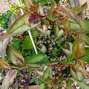 先日😆😘 好みの寄せ植え👀っけマシタ♪ 真夏向けのモノ?でしたけど日中はまだ 夏日☀なので🤔切り戻したり✂花柄摘み・植え替え等して長く愛でたいと思います~📣🥰🤗 🔴ペンタスの隣に🔵ブルーペンタス🌸追加した所です🎶 *ペルシカリアミクロセファラ”シルバードラゴン“はV字型の斑紋が入ったシックな葉色が特徴✨タデ科 ✳️宿根草▶ペルシカリアはタデ科植物の総称❥ *栄養系 矮性ブルーペンタス アカネ科ペンタス属 薄紫色なのかなぁ🤔😙 *クフェア😍カワ(・∀・)イイ!! *他にクローバー☘️+パコパ+ディコンドラ +ヘデラ♡盛り込んでます🫡🥰 🏷️斑入り見つけ隊♪No.19 🏷️小さな白い花