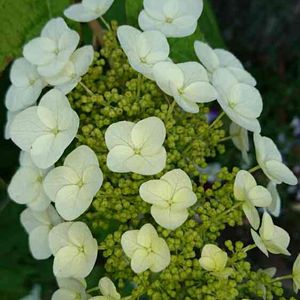 カシワバアジサイにたくさんつぼみが付いて、花も咲きだしました。早くもとても重そうな花房。こんなにつぼみが付くのは初めてです。狭い通路脇なものですから、嬉しい反面、若干戸惑っております😃💦