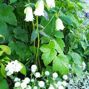 小さな花壇の白いお花コーナー💕 朝の光の中で一層輝いて見えます✨