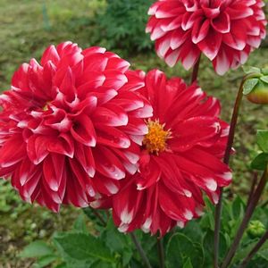我が家のダリア 紅白で咲いてます❗赤はちょっと虫に食べられてる〜😅