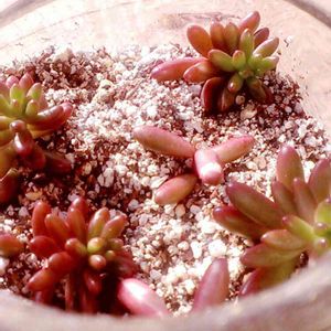 我が家の多肉ちゃん♪ 外だけど大きな瓶の中は温室のようです♡ ここんとこのさむさで可愛く紅葉してます^^*