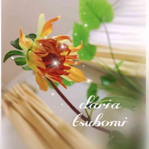 この前のひまわりに間違いそうな黄色のダリアさん…🌼🌼🌼 終わったけど蕾を生けてたら… 少し開きそうに❤️ 開くかな~どうかな~☺️💕 今日も一日心地よくです🍃🍃