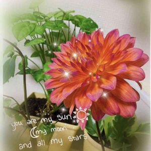 おはようございます💛 ダリア咲きました(*^^*)💖 去年はオレンジのダリアさんでしたが… 今年は垢に近く少し黄色が混ざってます☺️ とてもべっぴんさんです🌸🌸🌸