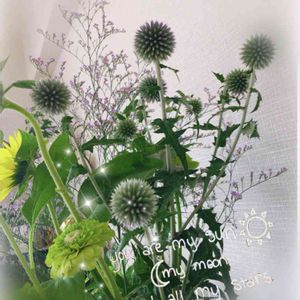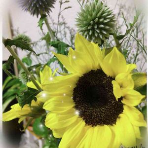 おはようございます🌼🍃 ひまわりさん背丈は低くなったけど… まだガンバって咲いてくれてます💖 ルリタマアザミも元気です💛