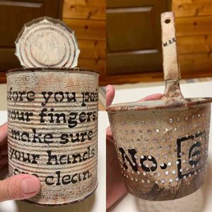 フルーツ缶を使ったリメ缶と 右側は100均の茶こしをリメイク♡ 茶こしは取手に穴が空いているので 壁に掛けられるし 穴が底にも側面にも沢山空いているから水捌け抜群👍✨