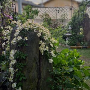 横にある石にも 🥳クレマチスのシャワー✨🚿やってみました👌