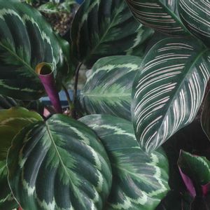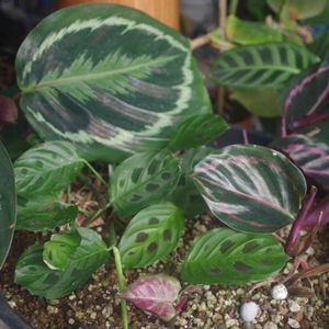 夜に撮影したカラテア類は、葉っぱの裏側の紫も映えます。。 左のカラテア オルナータ サンデリアーナは最近のお気に入りです🍀 お気に入りのカラテアは絶やさないようにしないと。。 さて真ん中の斑入りは最近買ったのですが、どなたか名前ご存知ですか?