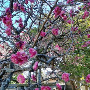 お墓参りに来ました お寺の梅が綺麗に咲いていました (^-^)/🌸 今日は暖かく良いお天気です☀️