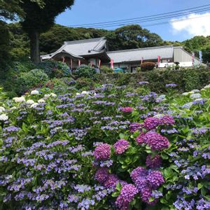 山の上のお寺の紫陽花まつり こんな綺麗な色もいい。 細い細い長い道を登って着きました🚙🗯↖️↙️🚙🗯