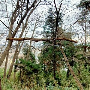 朝活散歩道🚶♀️にて… 久しぶりに🚶♀️きましたよー 🥶耐えて ここ迄来ると背中が汗ばんで… 風で木が折れた⁉️ 折れた木を受け止めちゃってるし…