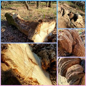 朝活散歩道🚶♀️にて… 切り倒された木 切り株直径2メートル位 サル🐵コシカケ30センチ程 だいぶクチクが進んで危険な状態だったようです。 思わず斜面を降りて撫でてました。 今迄、お疲れ様でした。 有り難うと… やっぱりさみしい😢