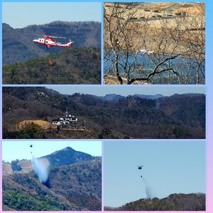 朝活散歩🚶♀️道にて… 21日に両崖山、山頂付近で発生した林野火災 今日は空っ風…強風が吹き荒れて 栃木、埼玉、茨城の防災ヘリ 自衛隊のヘリコプター 近元の🚒と、昼夜通して消火活動してますが 風に煽られ延焼中54世帯に避難勧告が出ている状況。 土、日は天気☀️に恵まれ風も無くてハイキング日和でした。 両崖山、天狗山に沢山のハイカーで賑わってたそうです。 近く西渓園(梅の名所、1200本の紅梅)がありハイキングコースから眺める景色は山に☁️が霞のようにたなびいているかのようで、素敵なのですが…心配😟です。 私も山歩き⛰️大好きです。 山頂でのランチ☀️🍴 コーヒー☕は至福の一時です。 私もですがハイカーの皆様、火器を使用する際には重々気をつけて下さい。お願いします🙇⤵️