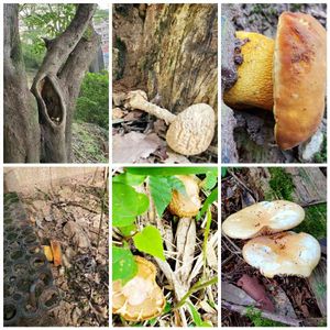 散歩道の大きな古木の高い所に🍄 Google先生よると キウロコタケらしい?