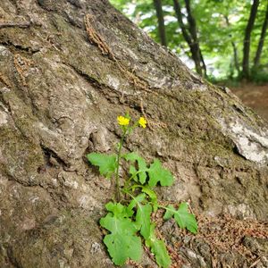 朝活散歩道🚶♀️にて… オニタビラコ キク科オニタビラコ属 花期…4~10月 分布…日本 花言葉…純愛 木の足元にオニタビラコさん こんな所まで、昇りましたか😲