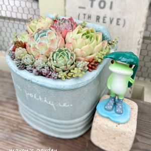 おはよ〜ございます ฅ՞•ﻌ•՞ฅ 今日はまたお天気下り坂みたいですね☂️ 花友フェスタでGETしたリエール苗で寄せ植えした中に ムッチリさんもぷくぷくさんも入ってるので 🏷ムッチリぷくぷくの日に参加します 🐸コポたんのつぶやき🐸 夕方からまた雨が降るみたいケロよ〜💦 お出かけのみんなは傘を忘れずに〜ケロケロ~ 🏷6日はカエルの日