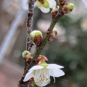 可憐な梅の花 近くに寄れなかったので 遠くから下向きのお花しか撮れませんでした でも 俯いた感じが冬を耐えているようで健気に見えました✨
