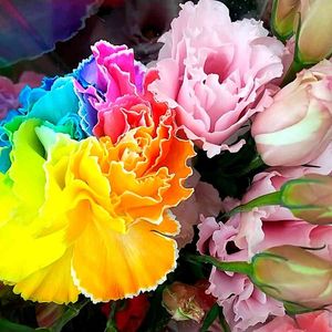 レインボーカーネーションが スーパーの切り花で売られていました! どうしたら こんなレインボー🏳️🌈に?(((^^;) 種まきカーネーションしてるから 方法がわかれば是非真似してみたい ( *´艸`)笑