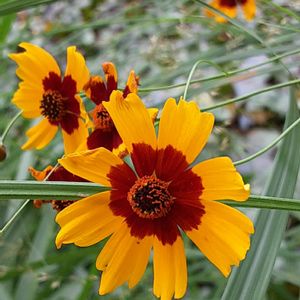 風に揺れるハルシャギク「ハル」は春ではなくペルシャのことだとか。別名)蛇の目ぎく。🐦小鳥は近づかないのかも。 ☝️が雑草と称されてるのはお気の毒です😔