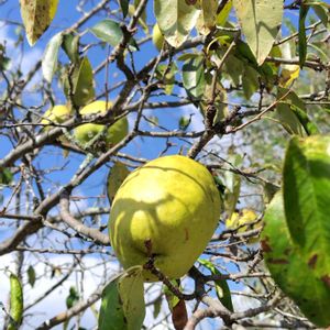 この「カリン」は今年は不作で、3個しか実らなかった。 隣の木は8個だけ。
