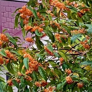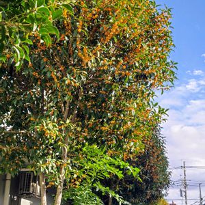 今日の花 キンモクセイ 金木犀 ここ3年、残暑が厳しかったせいらしく、金木犀の開花が例年より20日程遅れた。 涼しくなるのを待ってたように、一斉に開花。 ①②③金木犀の並木 10本ほど 高齢者施設の前。2025/1023pic ④⑤ 並木の端にヒイラギモクセイ2025/10 2025/1028 金木犀より遅れて 満開 金木犀と銀木犀の交配種 ユカリさんの 🏷️2025秋の十草 金木犀で参加7草目