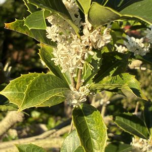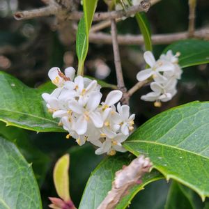 ヒイラギと銀モクセイの中間植物「ヒイラギモクセイ」をパチリ!📸🌼🌿 お花は、銀モクセイと同様、白色です。😄🤗🌞✌️