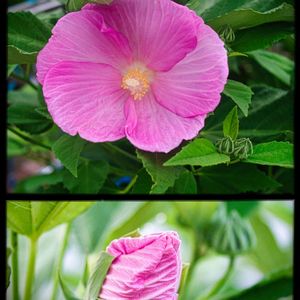 芙蓉(フヨウ) ピンクのミニソフトクリーム?からの翌日 今年の第一号咲きました 👏👏👏👏👏 夏の主役花の1つです