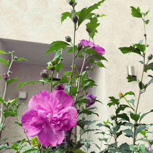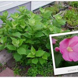 フヨウ 今日のお花なので 参加します🙋 花の写真は残念ながら 昨年8月のです‼️ 順調に成長して✌️ます 咲けば 我が家の夏の主役ですかね⁉️