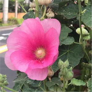 タチアオイ アオイ科 落葉低木 教えて頂き感謝です🙏 遊歩道で発見 空に向かって 勢い良く咲いた 花びらが綺麗です🤗