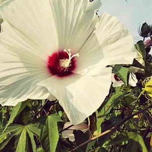お出かけの帰り道 車で通りすぎて、バック。 いた!いた!いた! 西日に当たり 風に揺れてる芙蓉の花 白がキレイだ😍