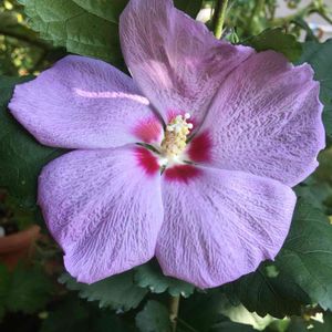 💜💜💜💜💜 🌼🌼本日100pic‼️🌼🌼 やったー٩(๑❛ᴗ❛๑)۶ 今朝、お庭に咲いたんです‼️✨😆 去年辺りから根っこが出てきて、🍀なんだろうなんだろうって思っているうちに、🌼今月始めに蕾ができてなかなか開かなかったんです。 嬉しいぞ!まさかお庭にこのお花があるなんて😆しかも今月31日に!今から咲くんですか 😂 8/6にupした外出先で見つけてたのはムクゲ。 見分けが難しいけど、これは調べてたら画像をよーくみると雌しべが5つに分かれてたょ。 🌿芙蓉に似てるみたい。真っ直ぐ5本位の枝でまだ80cm位。🍀🌿🍀 💜蕾がたっーくさんついてるのでいっぱい咲いたらまたupしまーす💜 🍀追伸:今日100picでした😆3月から始めて皆さんと楽しく交流させてもらってます(o^^o) ありがとうござます╰(*´︶`*)╯♡ 100picが今朝の発見のお花だったとは💜🌼💜