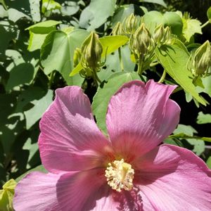 今日のお花フヨウ(芙蓉) アオイ科フヨウ属の落葉低木 一日花でハイビスカスやモミジアオイの仲間だそうです 先日投稿の木瓜の実の隣に大きなフヨウの木があり、優しいピンクの花🩷が咲いていました 一日で終わるのは残念ですね 8月26日AM9時30分🤳