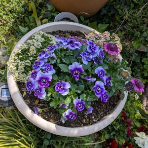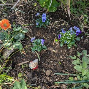ビオラの季節ですね~日々草中々花が付かない🙄脇にチューリップも植え付けしたけど、来年にならないと芽が出てきませんね!😂🌱