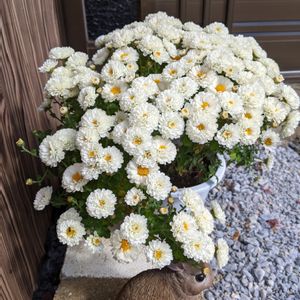 玄関が、華やかになればと、思い花屋さんの店内に入り、人目で即決持ち帰り!ガーデンマム🌼