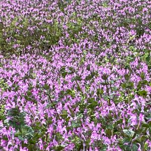 家から向こうの方にこの景色が見えて 寒かったけれど嬉しくなって歩いて来ました✨ いつもは広い落花生畑が一面仏の座で春色に💮🌸💮🌸