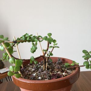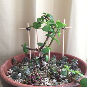 2021/02/07 無事冬を越せそう 冬もしっかり成長するんですね。脇目がどんどん増えてます。 近いうちに伸び切った部分を剪定します。目指せ多肉盆栽